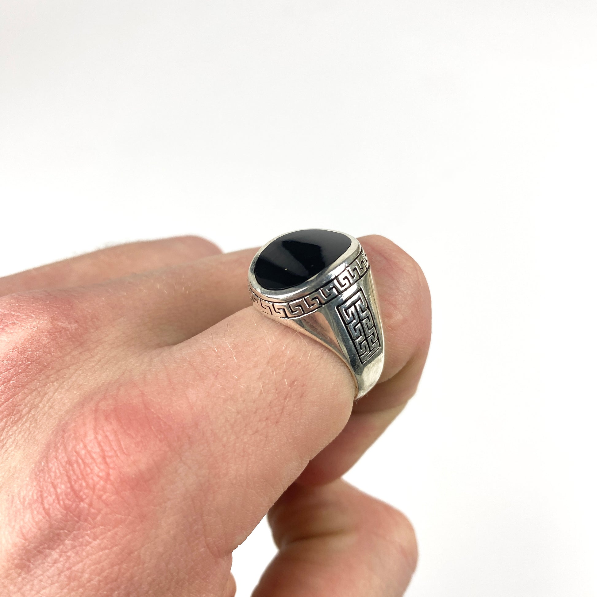 • set with a rounded onyx stone