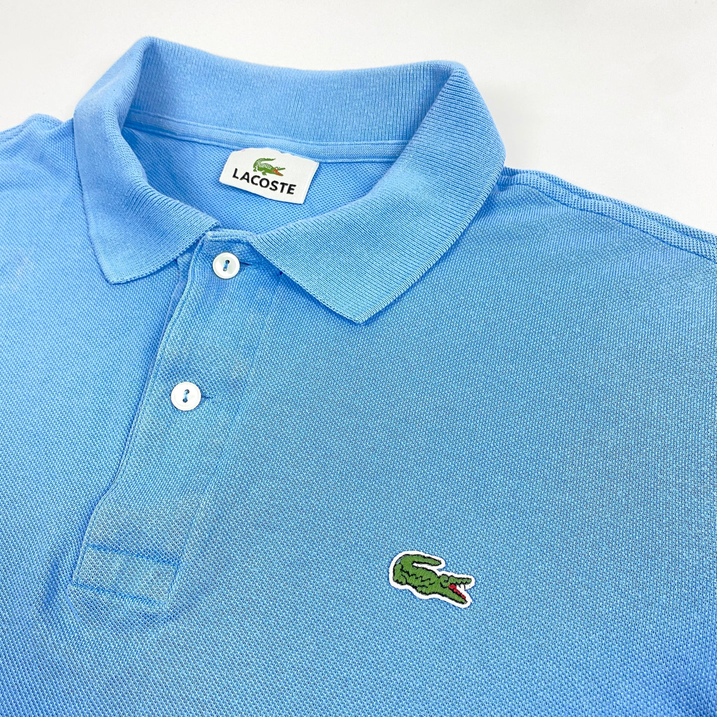 - classic Lacoste polo shirt, colored in a light blue