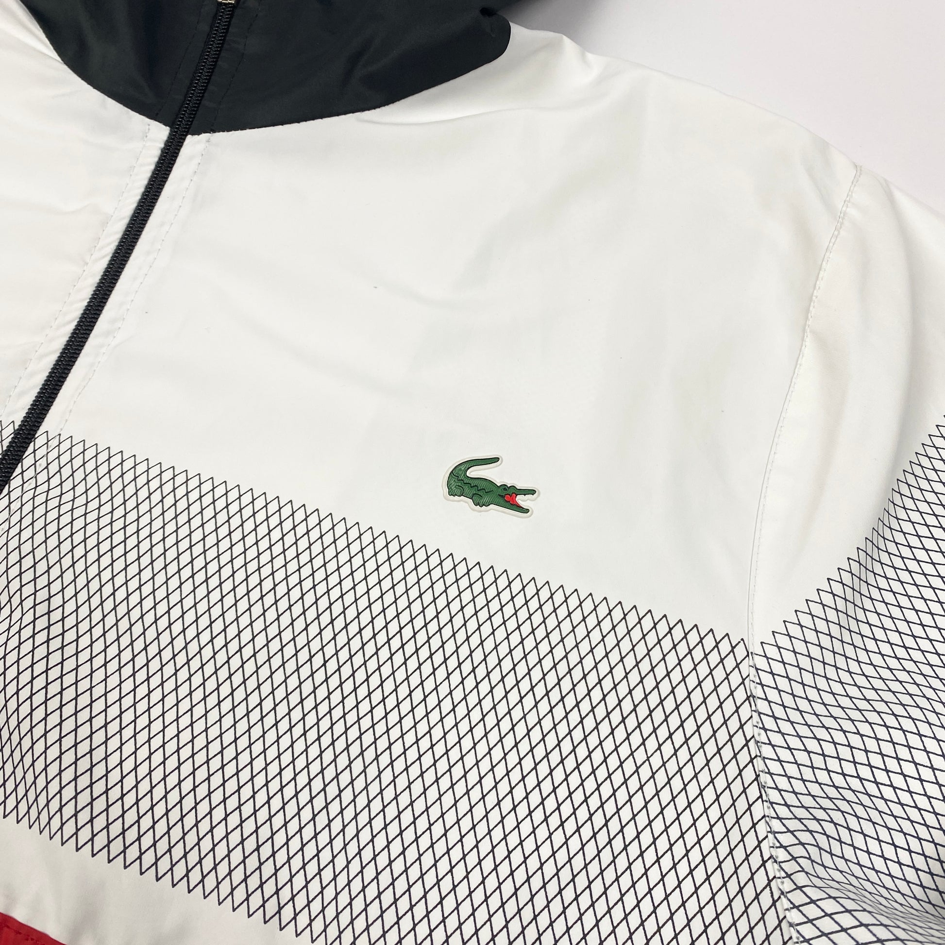 - Lacoste lettering on the sleeve