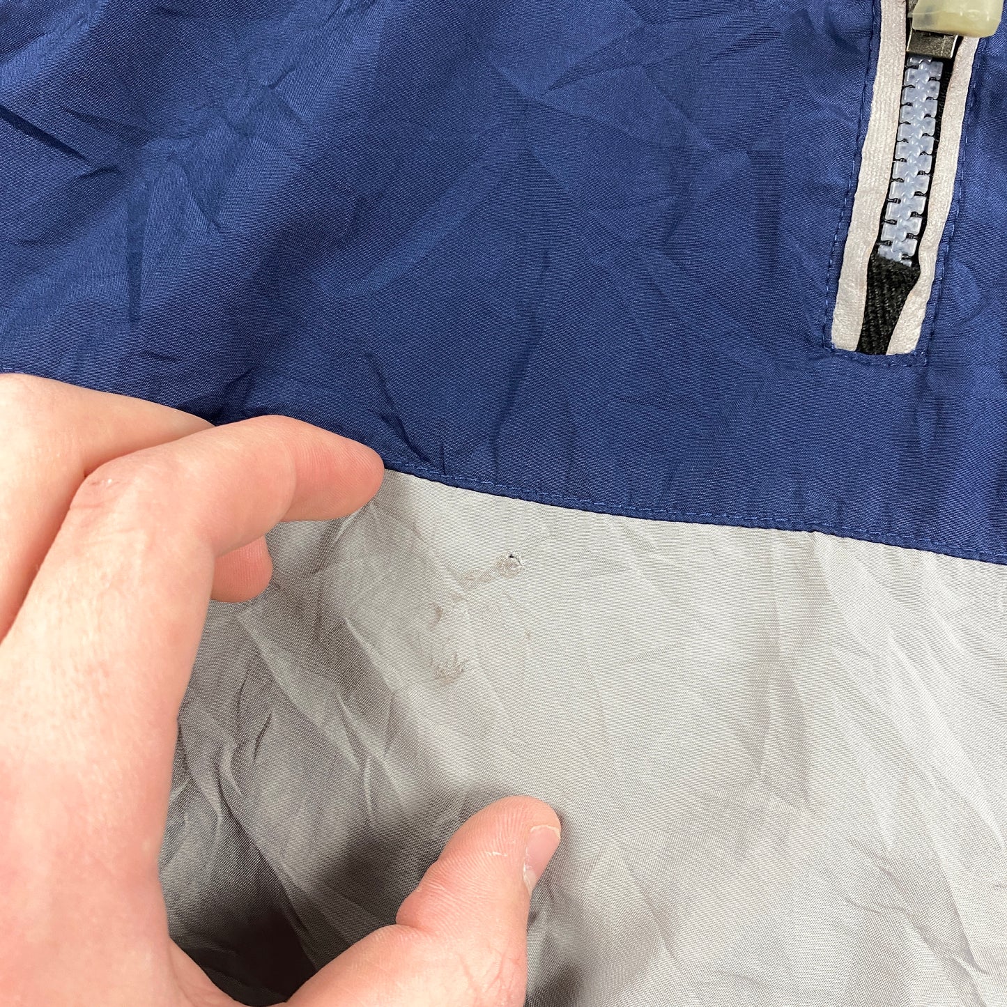 - worn - a tiny hole with small marks on the stomach part
